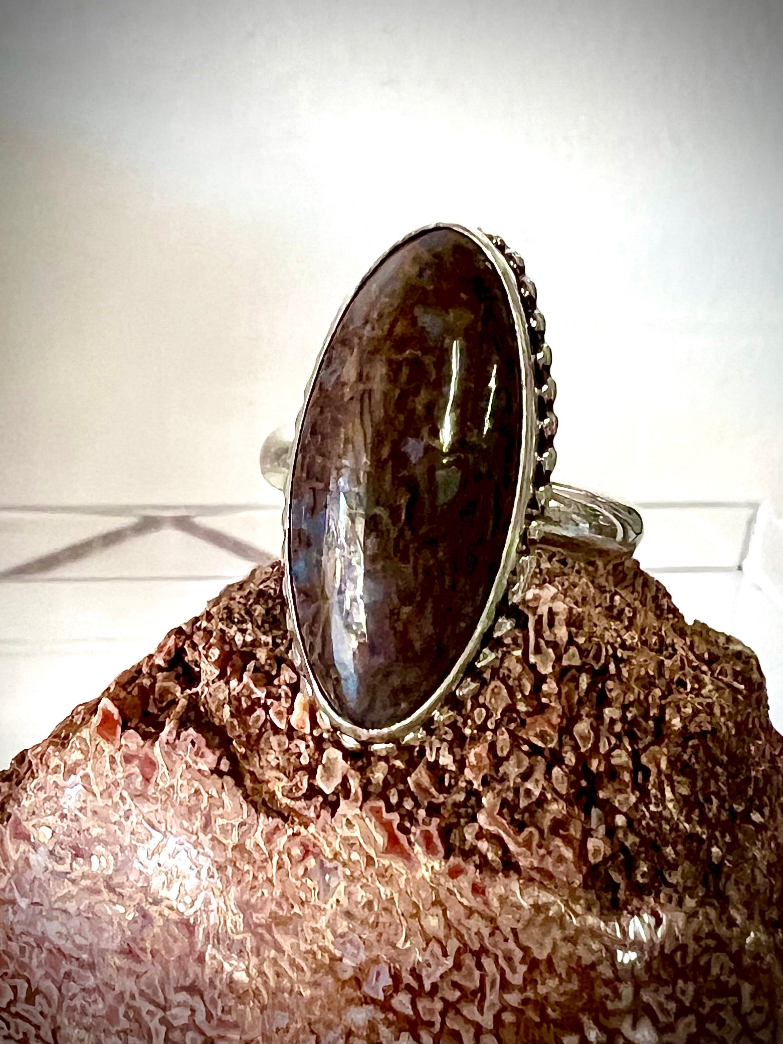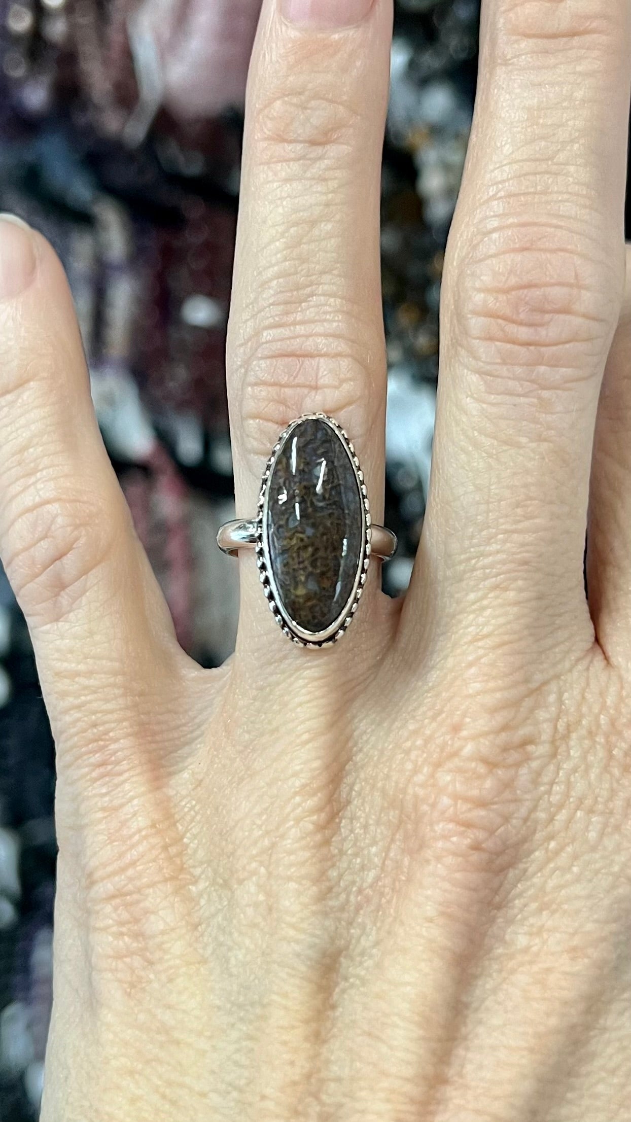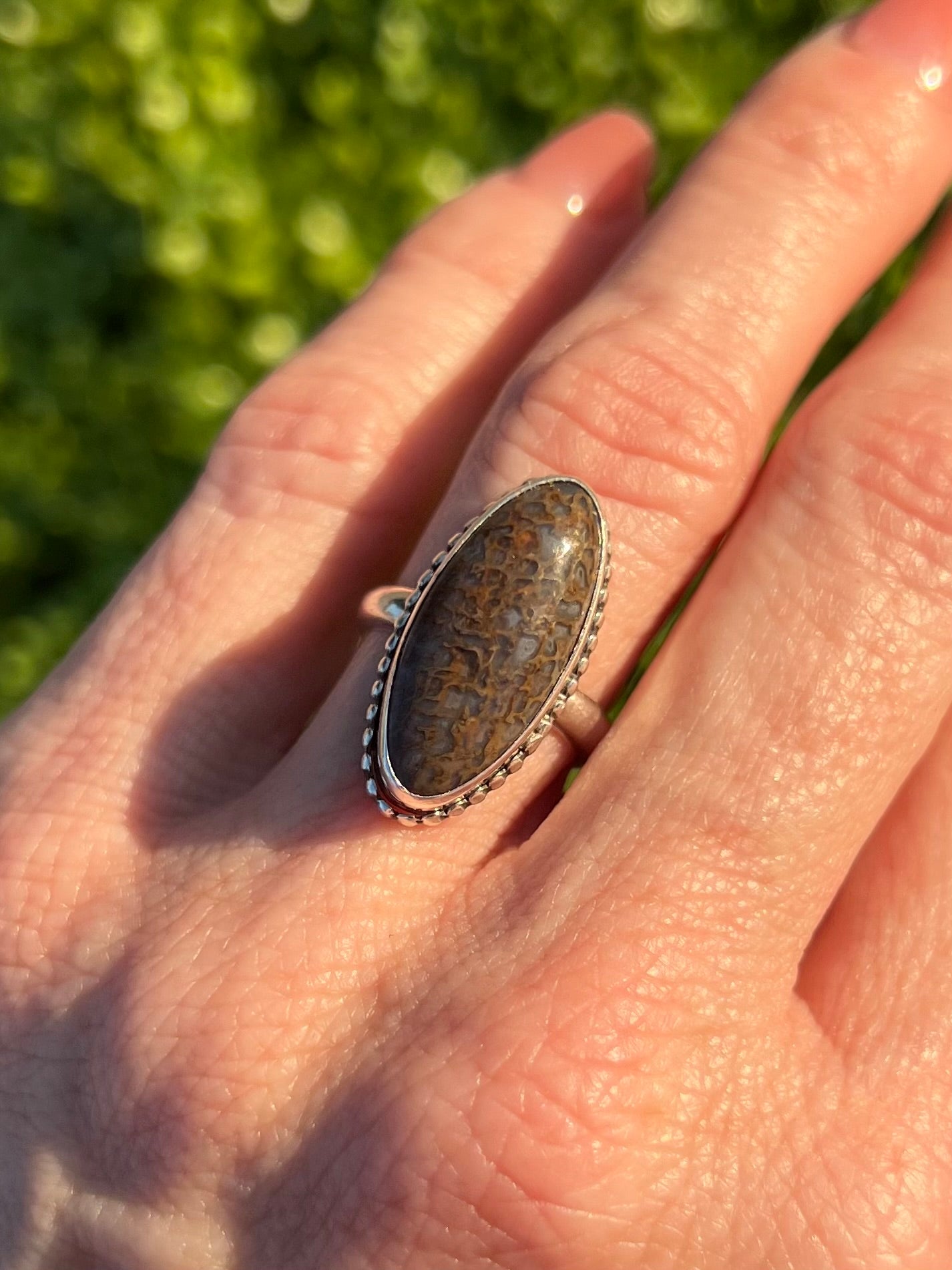 Dinosaur Bone Sterling Silver Ring - Mental Stability, Communication, Enhance Memory, Calms Anxiety